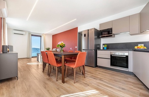 The holiday apartment "Il Cinque" is located in Tignale and boasts a breathtaking panoramic view of Lake Garda. This 85 m² property consists of a living room, a kitchen, 2 bedrooms, and 1 bathroom, and can accommodate 4 people. On-site amenities include high-speed Wi-Fi (suitable for video calls), a TV, air conditioning, a washing machine, and a dishwasher. A baby cot and a high chair are also available.