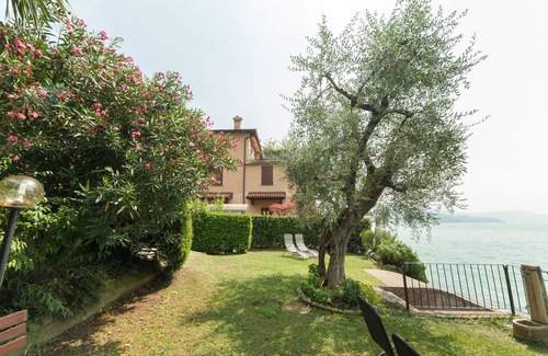 This stretch of the lake is ideal for surfers as it is attended by the wind. 5-10 minute walk to get to the center where there are two quaint restaurants with specialty fish from the lake. The dock allows the docking of the boat that goes back and forth between the fleece and Mount Island, which is a natural beauty and historical interest with remarkable medieval ruins and buildings dating back to the republic of Venice. Besides Mount Island can be seen the two small islands of St. Paul Island and Loreto both private properties.
